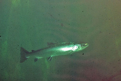 leicht zu verwechseln mit Lachs – Salmo salar mit ähnlichem Verhalten.